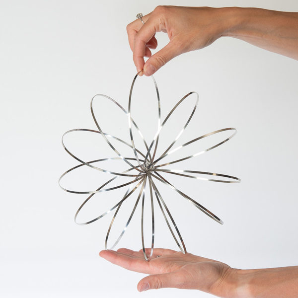 Take one magical coil of steel, then give it a light press to let the magic begin. Slip it over your hands and let it flow across your arms. Share the fun and pass it to a friend! This high quality stainless steel spring will flow and roll around just about any object almost like a metallic bubble. It’s a Springy Slinky for your arm!