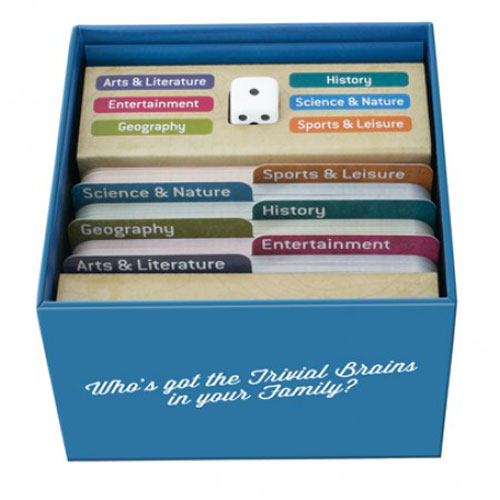 QuizMaster games come with all you need for a trivia challenge of epic proportions! Simply slip of the lid, pull out the card, roll the dice and off you go!
